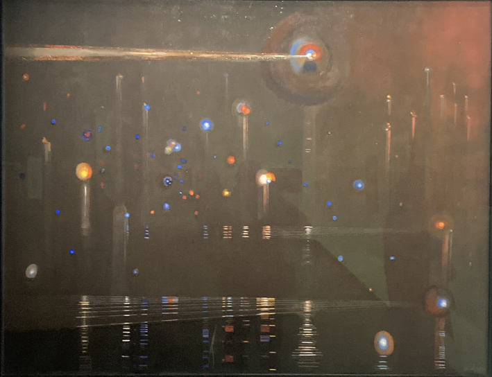 À gauche de la composition, l’artiste représente les buildings de Hong- Kong et les toits de Séoul, vus à travers les fenêtres d’un wagon.