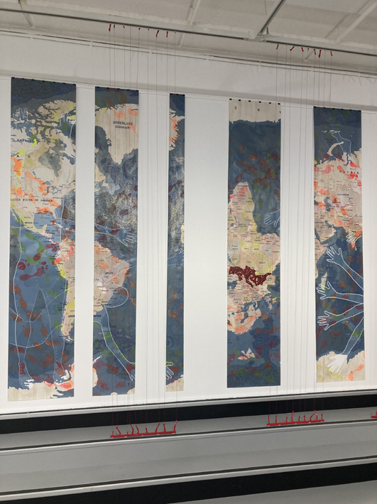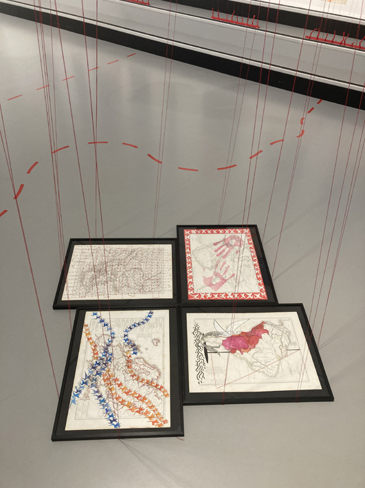 Ce dispositif particulier a conduit Louise PERRUSSEL à penser un accrochage adapté, qui joue avec les contraintes des Vitrines : les œuvres s’y déploient autour