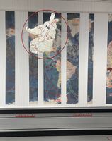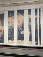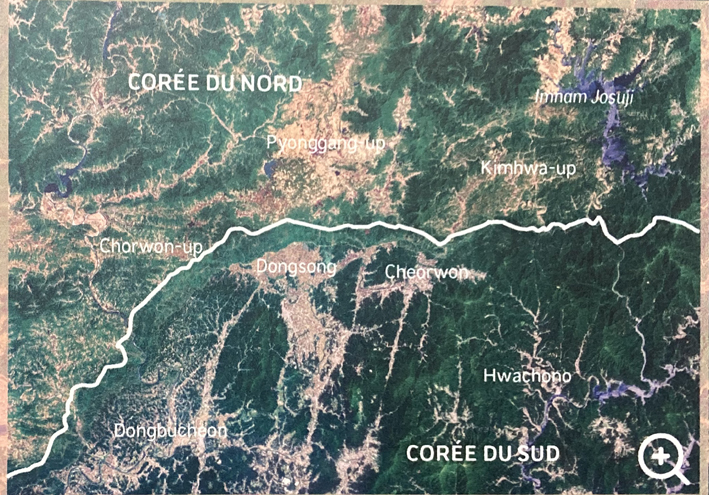 À gauche de la composition, l’artiste représente les buildings de Hong- Kong et les toits de Séoul, vus à travers les fenêtres d’un wagon.