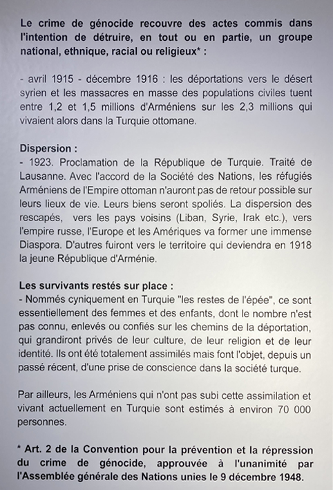 Depuis un siècle, le peuple arménien, victime d’un génocide qui a décimé plus de la moitié de sa population en 1915, a perdu une grande