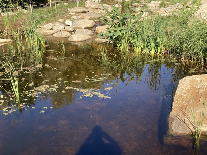Le parcours de l’eau forme un élément structurant du jardin liant coteau et Loire. Son alimentation fonctionne en circuit fermé, et par souci d’économie d’eau,