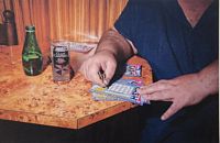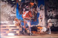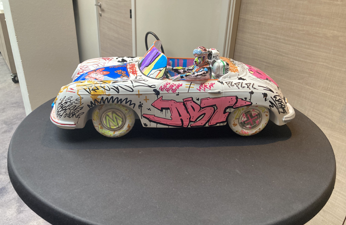 sa pratique du graffiti. Comme un dernier clin d’œil, il peint l’accessoire indispensable des road trips : un sac rempli de bombes aérosols.