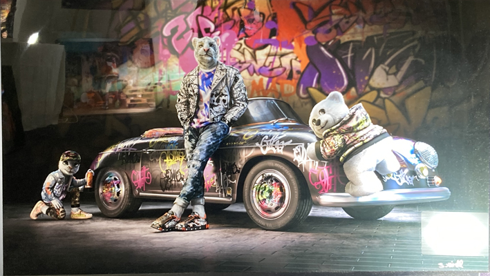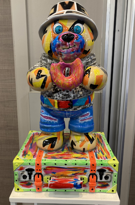 L’ourson, introduit avec sa sculpture “Innocence", symbolise l’enfance, l'amour pur et la simplicité des émotions qui traversent ses œuvres.