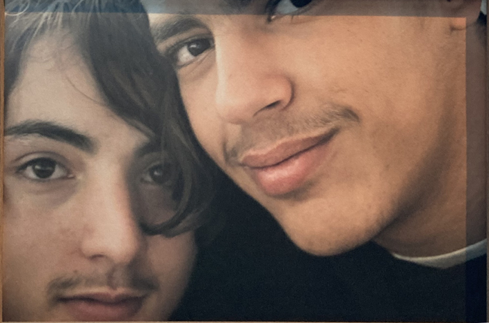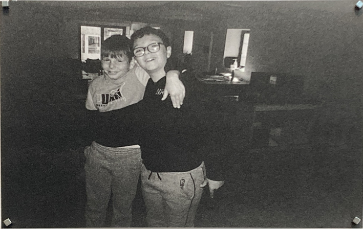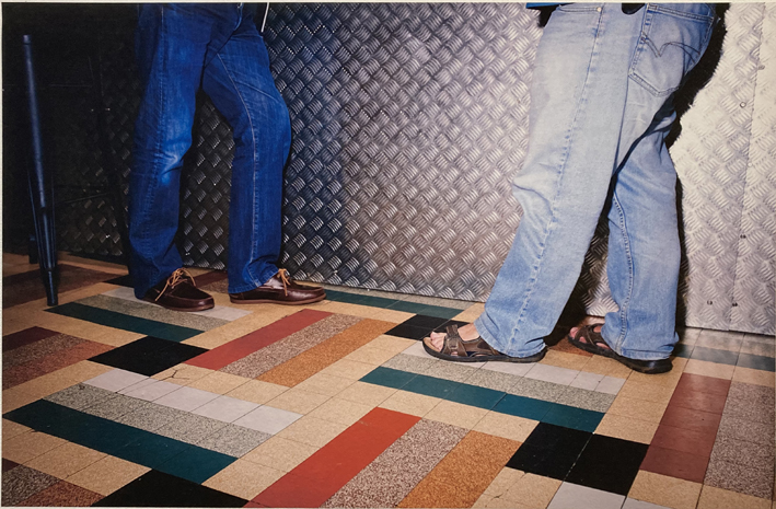 Au centre, les flashs blancs et bleutés des soirées dans les clubs nantais illuminent les deux amis et guident le regard du spectateur vers une