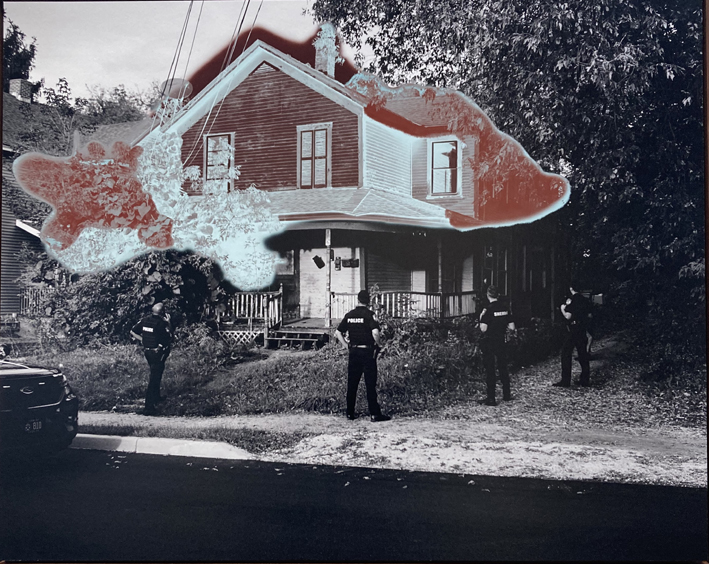 cet instant, la mémoire de l’artiste n’en conserve qu’un vague souvenir. Pour traduire ce flou, Bulea utilise le noir et blanc et fait disparaître