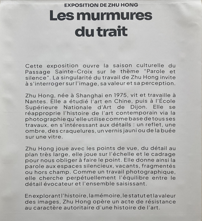 Via la photographie qu’elle utilise comme base de tous ses travaux, Zhu Hong nous invite à prendre