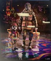 résine et travaillée à l’aérographe, devient un miroir des dynamiques sociales, tout en restant ancrée dans l'émotion pure. Ses tableaux, quant à eux,