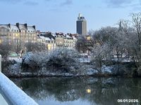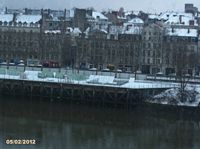 4 à 5 cm de neige glacée car les t° de la nuit ont transfomé la ville en patinoire.
