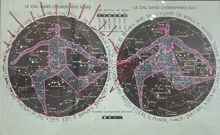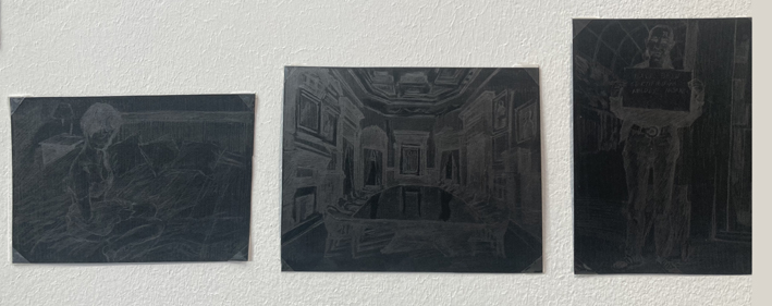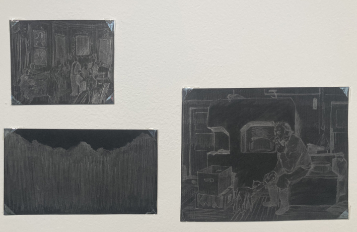est totalement revisité en négatif pour en proposer une nouvelle lecture par le dessin. L’artiste invite à