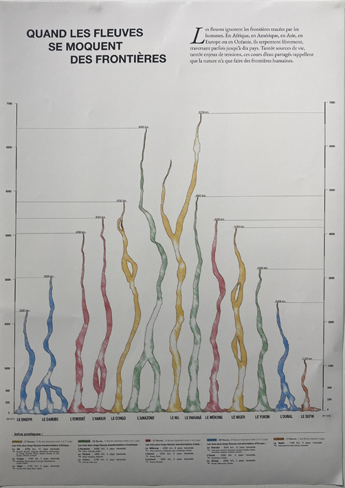Dans ce travail de data visualisation, les étudiants ont dû questionner la forme et le sens de leur production, en veillant particulièrement