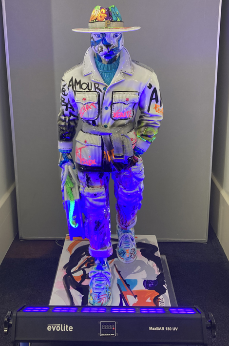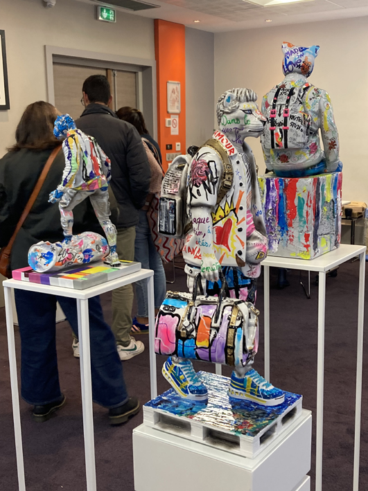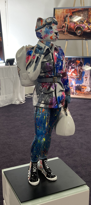 L’ourson, introduit avec sa sculpture “Innocence", symbolise l’enfance, l'amour pur et la simplicité des émotions qui traversent ses œuvres.