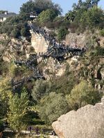 Au fond du jardin, inratable, s’érige l’escalier de la falaise. 28 mètres de dénivelé, 177 marches, 4 belvédères intermédiaires conçus comme des haltes dans l’ascension ou la