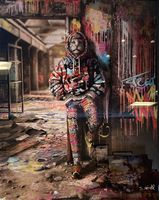 résine et travaillée à l’aérographe, devient un miroir des dynamiques sociales, tout en restant ancrée dans l'émotion pure. Ses tableaux, quant à eux,