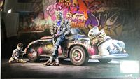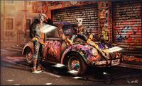 sa pratique du graffiti. Comme un dernier clin d’œil, il peint l’accessoire indispensable des road trips : un sac rempli de bombes aérosols.